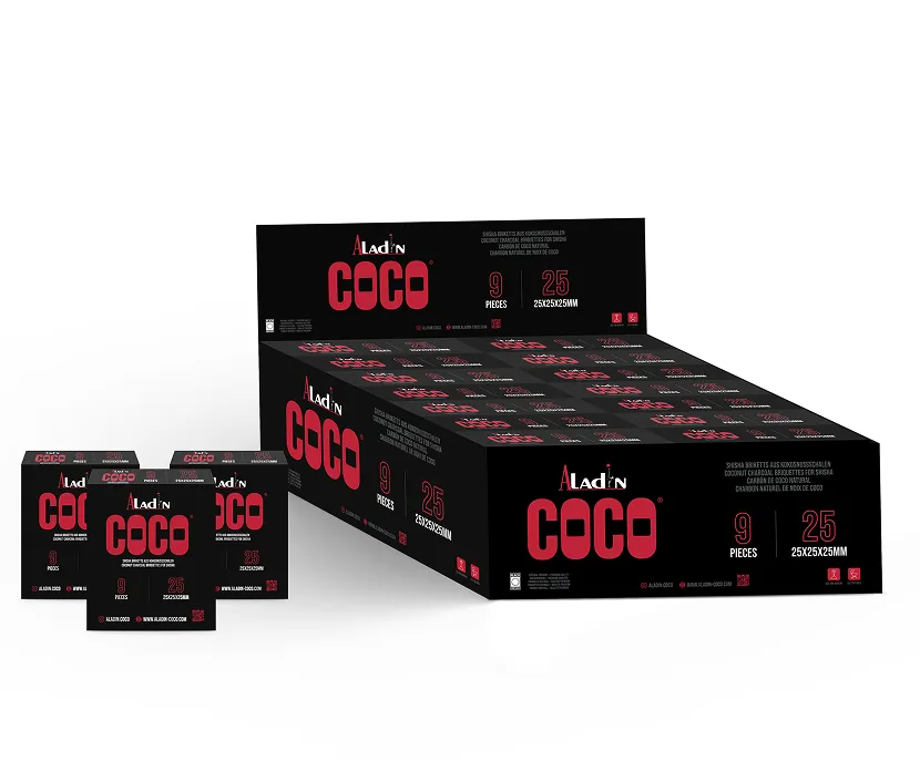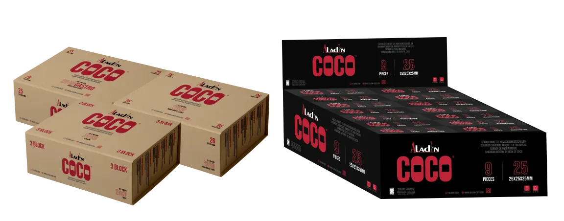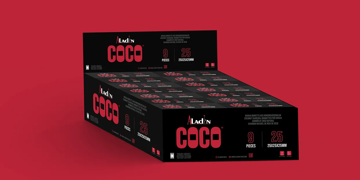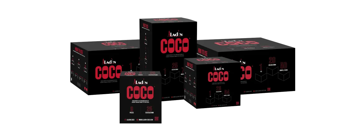 Aladin Coco Kohle-Briketts bieten planbare Qualität für den professionellen Einsatz. Gleichbleibende Performance, verlässliche Verfügbarkeit und klar definierte Formate schaffen Sicherheit im täglichen Betrieb und im Handel. Ideal für Shisha-Bars, Großhändler und internationale Vertriebspartner.